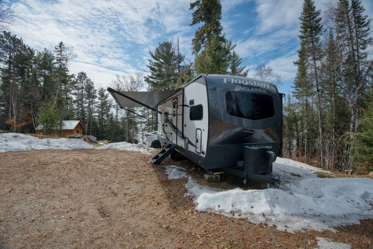 Escape to the Northwoods with this rare opportunity on the water! Nestled on 3.5 acres along a stunning lakefront setting, this property offers 275 feet of private elevated shoreline with Southern views. Enjoy the towering pines, nice fire pit area, and ample parking, clearing to build a forever home with another clearing for a garage/pole shed. Property has electric to the sleeper, camper and down to the lake where you'll find a dock and aluminum boat lift as part of the sale. Whether you're looking for a weekend retreat or a future build site, this property is ready to enjoy right away. Also included is a like-new 2023 8x30 camper, perfectly positioned to take in the lake views, along with a cozy sleeper cabin for additional guests. A compliant privy is already in place, offering convenience. You'll also appreciate the storage shed for all your lake gear tools ect. This property offers lots of goodies at a very affordable price. Schedule your tour today! Measurements are approximate.