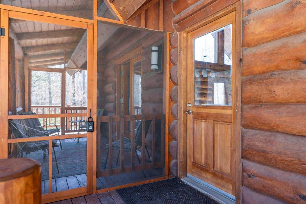 Exquisite Year-Round Log Home Retreat on 4 Wooded Acres. This beautifully maintained log home offers the perfect blend of serenity and convenience. Ideally located near numerous stunning lakes, this property is a gateway to the best of nature and recreation. The main log home features 1?2 bedrooms and 2 full bathrooms. warm tiles in both the kitchen and bath to add comfort and charm which are located on the main level. The lower-level primary suite boasts a luxurious full bathroom with a large soaking tub, separate shower, walk-in closet, and direct access to a private patio complete with a hot tub?your own personal oasis. The loft area, overlooking the cozy living space below, serves as a versatile bonus area or additional sleeping quarters.But the true standout feature... is a 40' x 30' detached garage that's more than just a garage?it's a showpiece. Equipped with in-floor heating and its own boiler heating system, this space includes two workshop areas on the main level. Upstairs, you'll find a fully finished bonus living area with two additional sleeping rooms, a half bath, and a spacious open-concept lounge filled with natural light.This property isn't just a home?it's a lifestyle. Whether you're seeking a peaceful retreat, a base for outdoor adventures, or a multi-functional living space, this unique country gem delivers.Come experience the extraordinary?your log home haven awaits.